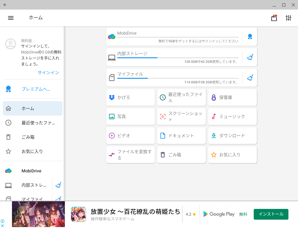 またMobiDriveの無料版でも5GBのクラウドストレージがあるみたいだから、それもお得かなとちょっと思ったり…アカウント登録はアプリからできました。Googleアカウントを使ってパスワードを入れるだけくらいの手間です。