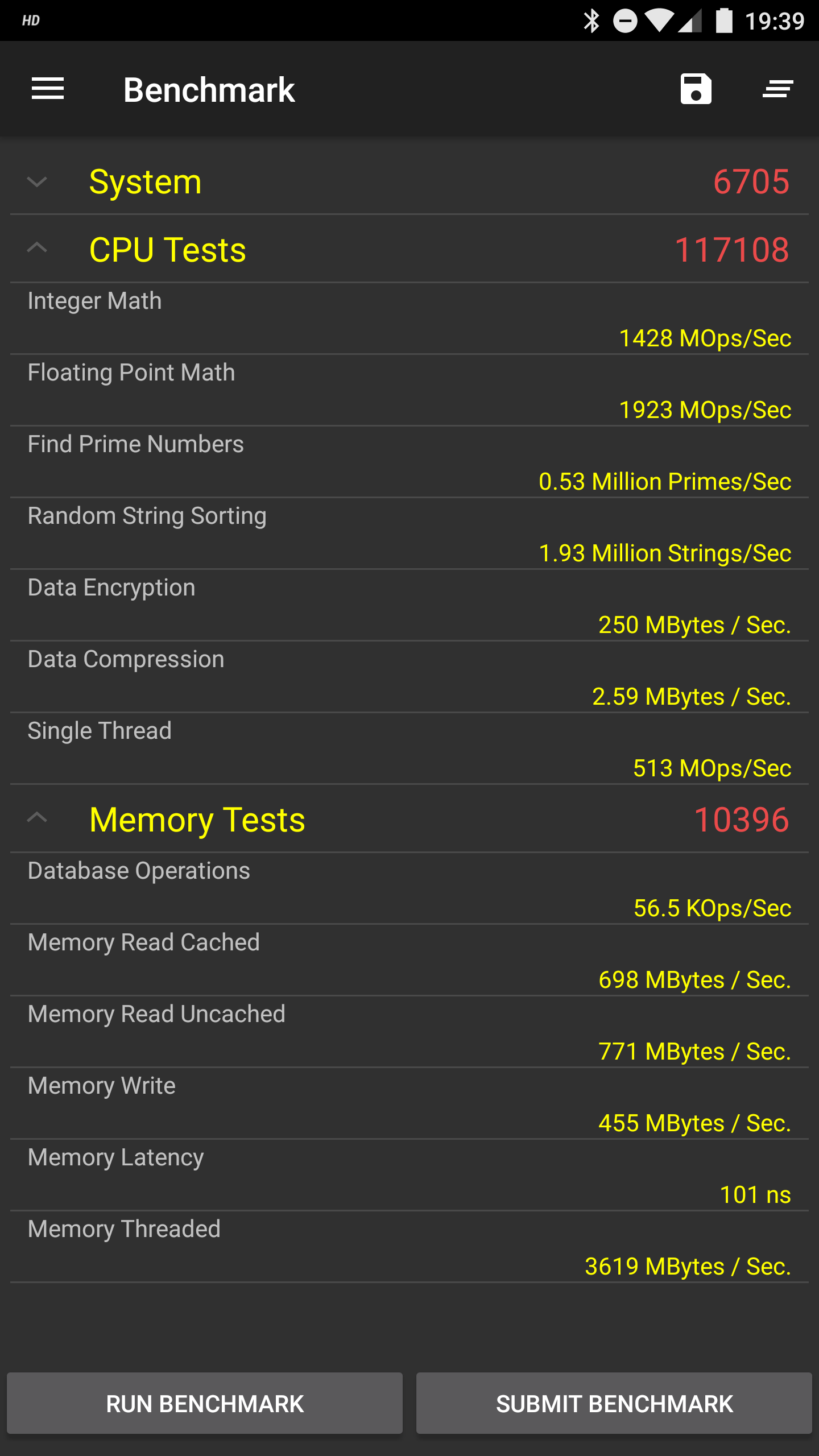 PassMark PerformanceTestのベンチ結果です。