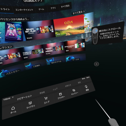 Oculus Goの端末上でストアからアプリを検索してインストールする方法です。