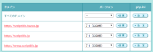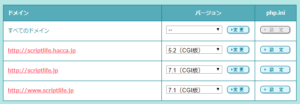 ただ、ロリポップはPHPのバージョンが変更できるようなので、管理画面の「サーバーの管理・設定 > PHP設定」より確認してみるとscriptlife.hacca.jpは見事にPHP5.2で動いていた。(無名関数機能の追加は5.3から)