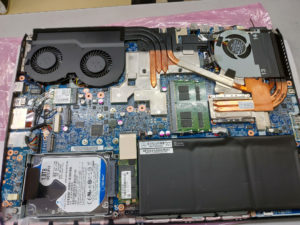 最後に撮影した姿になります。マザボとCPUとGPUが一体化しているから、マザボが壊れたら全取っ替えになる仕様なのがよくわかる感じです…やはりノートはどこかおかしくなったときのダメージがでかい。使うつもりの期間分は保障に入っておくべきです…