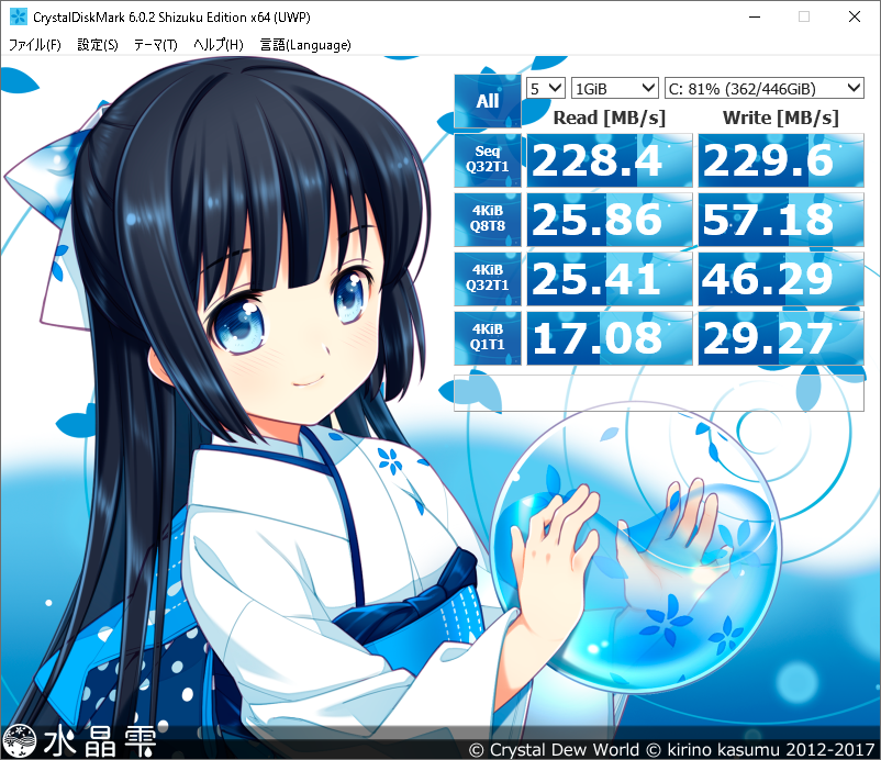 ちなみにSSDの速度が上がったわけではなさそうです…
